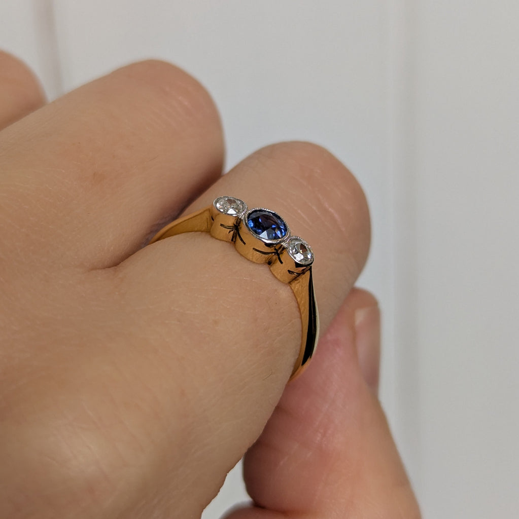 1920s Antique 18ct Gold & Platinum Sapphire and Diamonds Ring Size Q