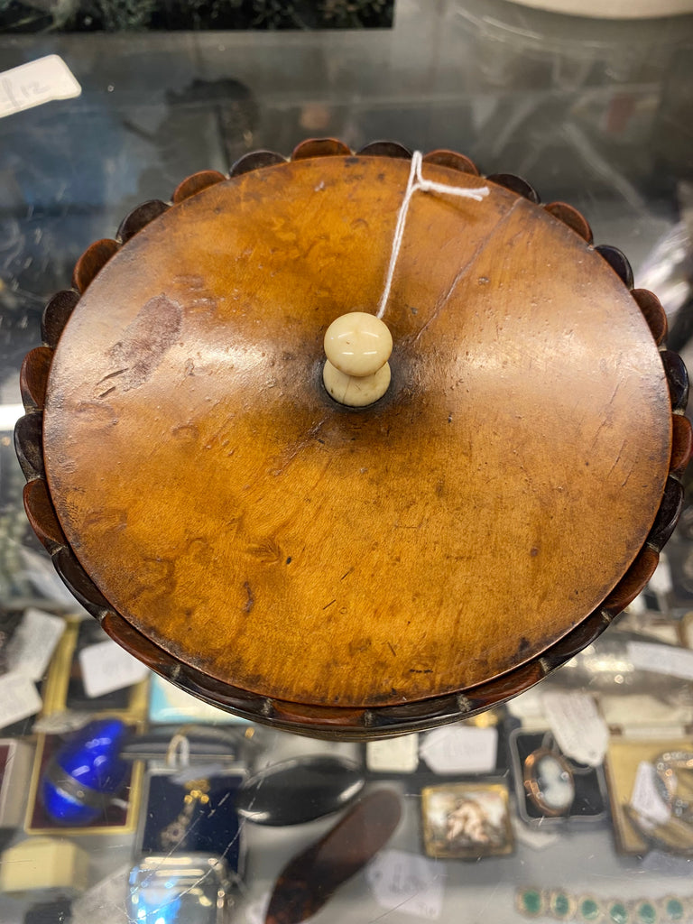 Condition is good, commensurate with age and use. Structurally sound. Small split to lid.