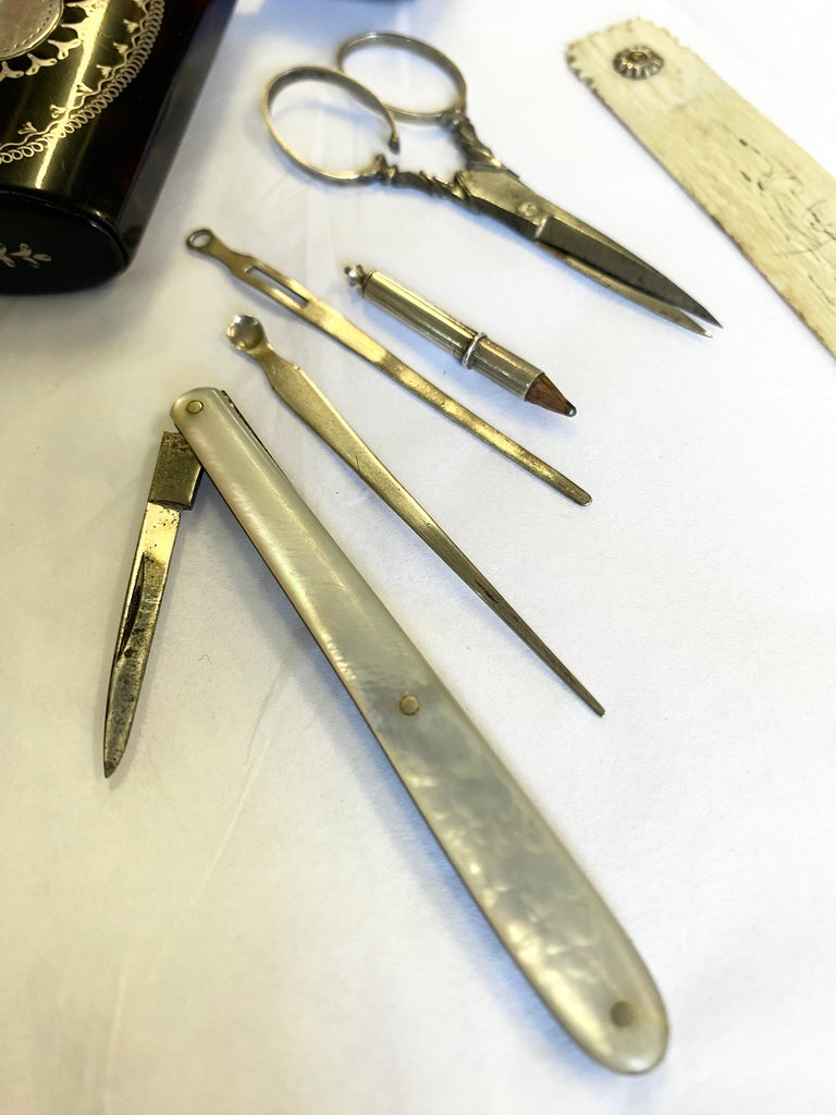 Antique Georgian Tortoiseshell & Silver Inlaid Etui