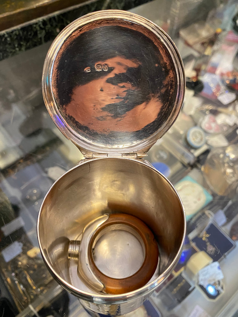 A Wonderful Antique William IV Hallmarked Sterling Silver Campaign Lidded Cup, Thomas Dicks London 1837. The Wooden Handle Unscrews To Store Inside.