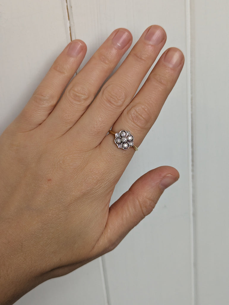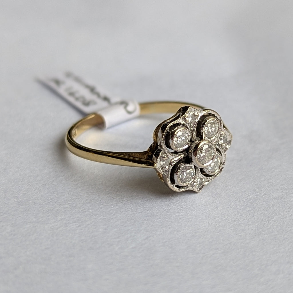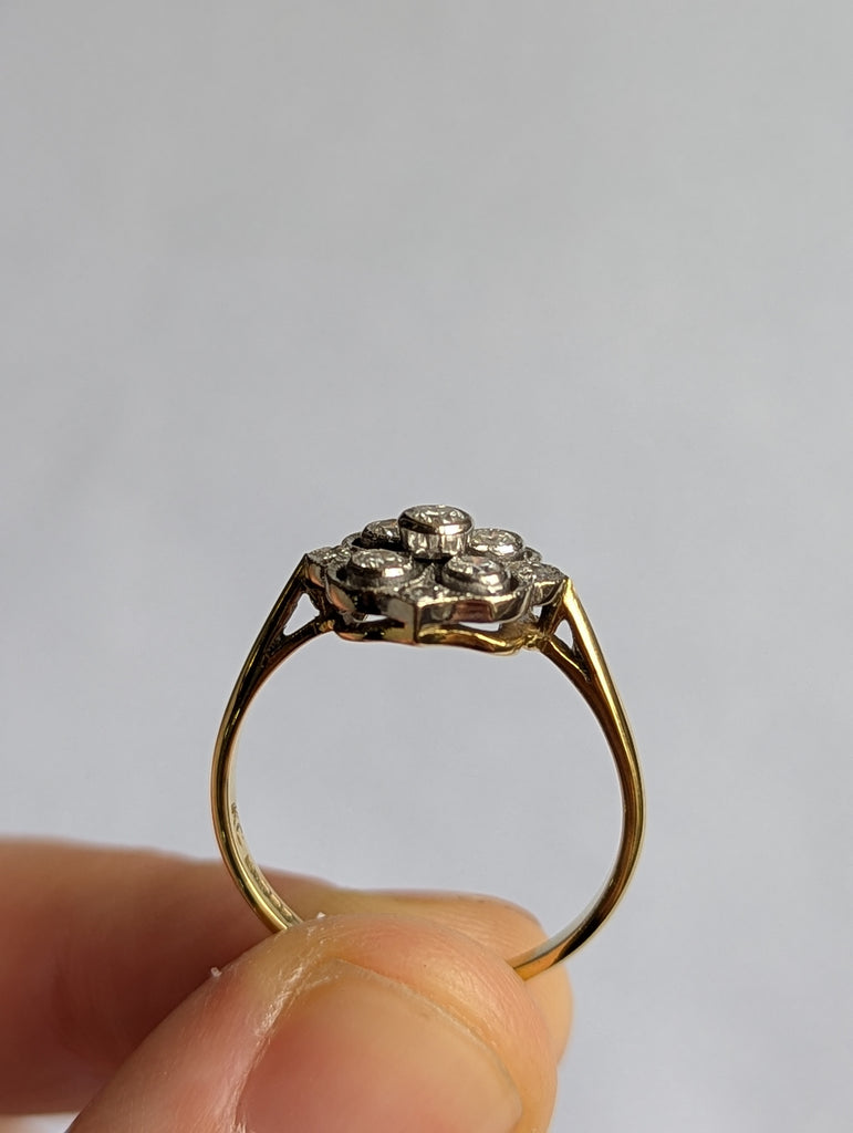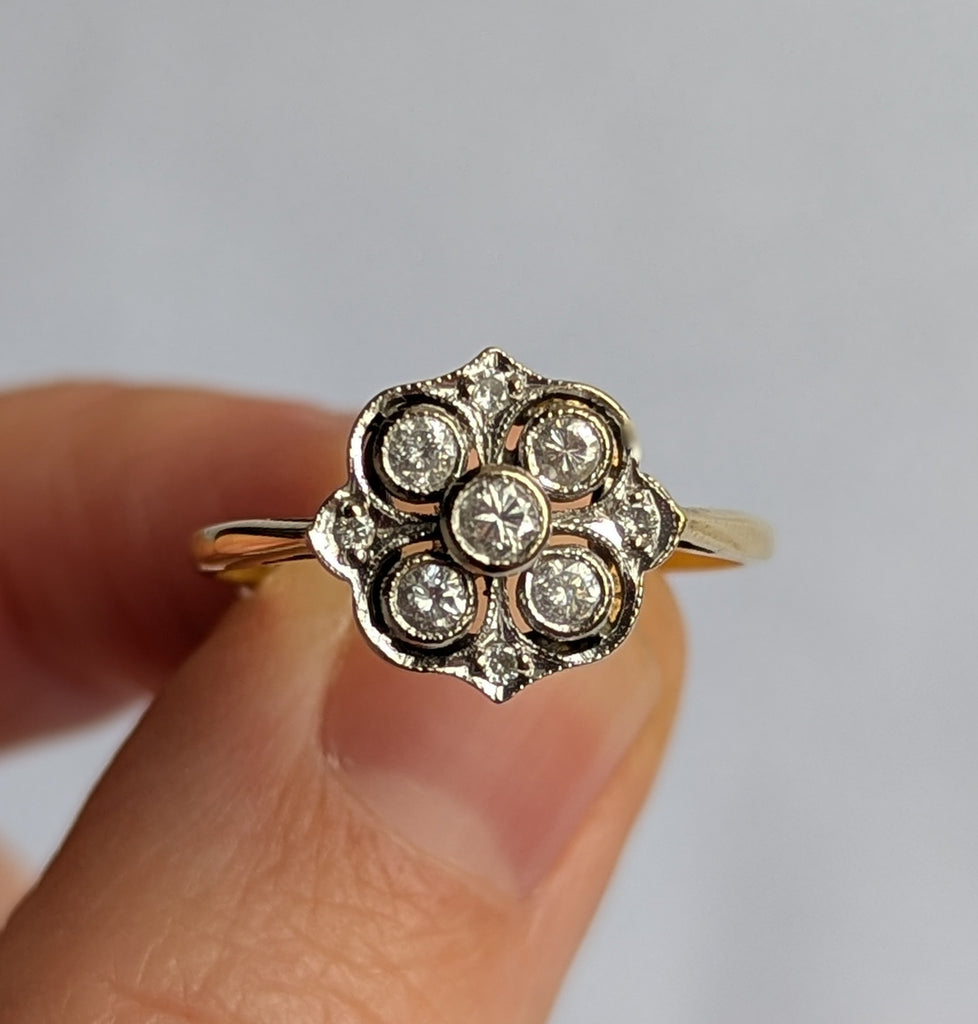 An utterly charming vintage 18ct gold fancy ring with diamonds.